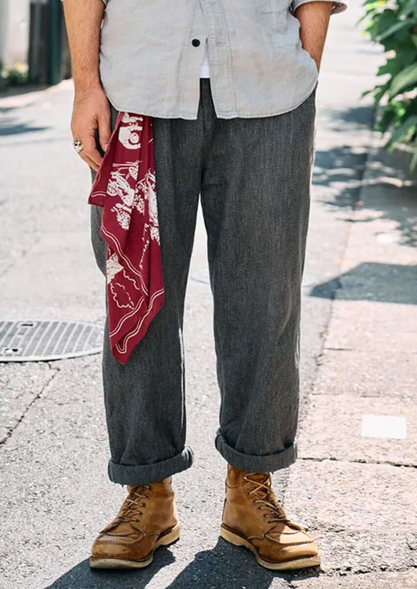 Tシャツ=ナノユニバース パンツ=ディッキーズ シューズ=ペトルーシャ バッグ=オーエフアール スカーフ=イロ