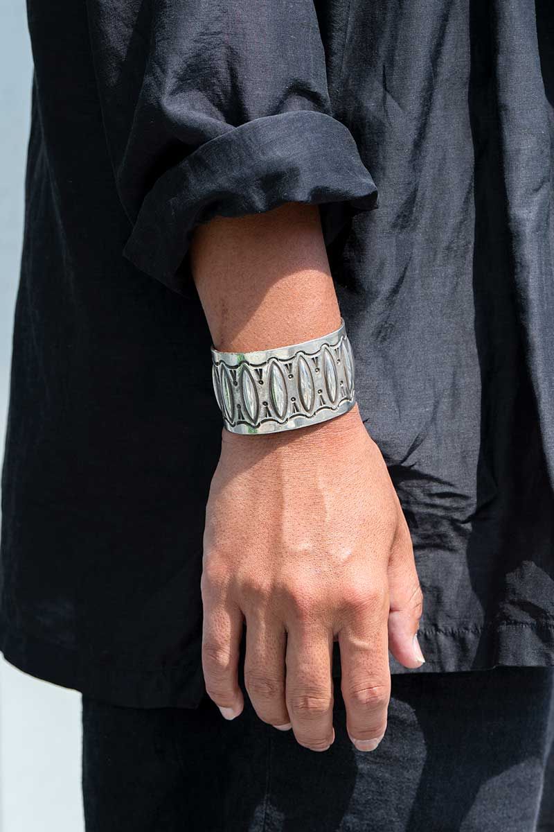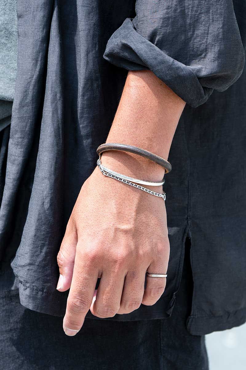 薄手の軽やかなシャツは、今季のアウターとしても活躍すること間違いなし。袖を捲ってシルバーアクセを加えることで、より一層お洒落な雰囲気に。