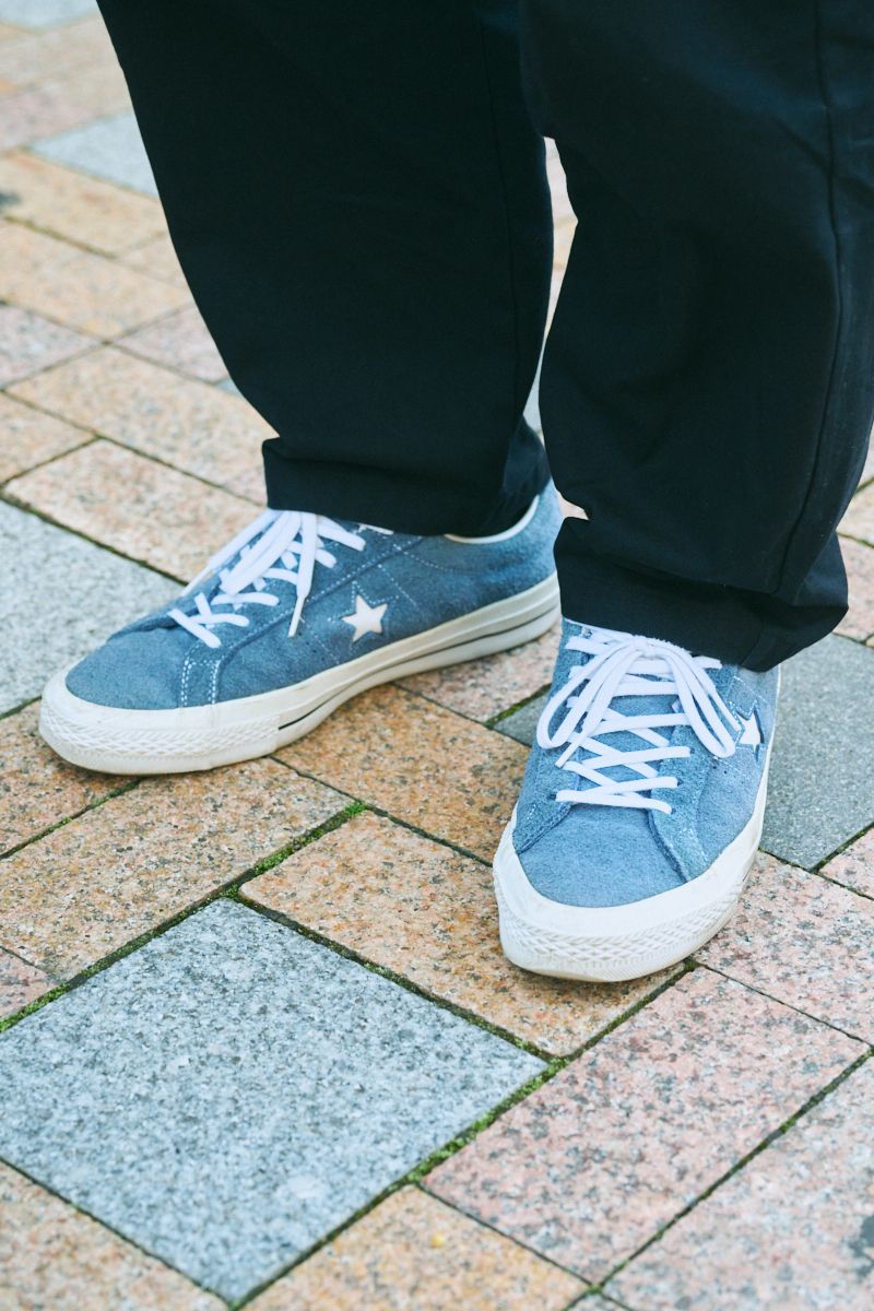 ▶白川さんのスナップをすべて見る白川智士さん(45歳)ワークテイストのブルゾンに、同ブランドのタック入りパンツを合わせたリラックススタイル。インナーに着込んだ白シャツとワンスターのソール&シューレースをリンクさせ、コーデにヌケも与えている。