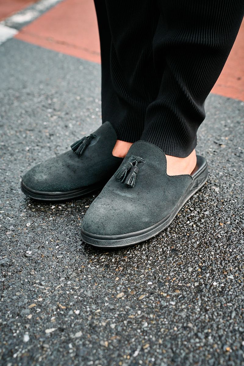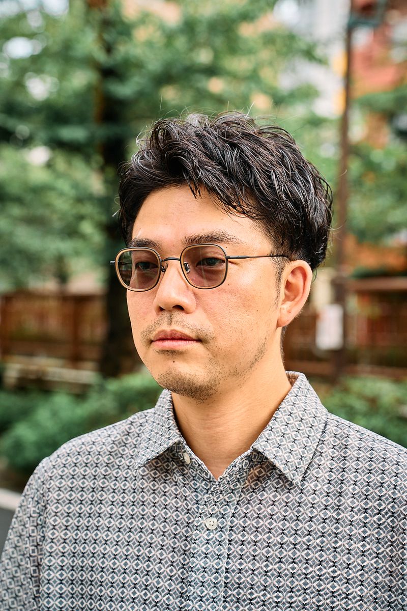 シャツ=シップス パンツ=ジーユー シューズ=マネブ 眼鏡=ブラン