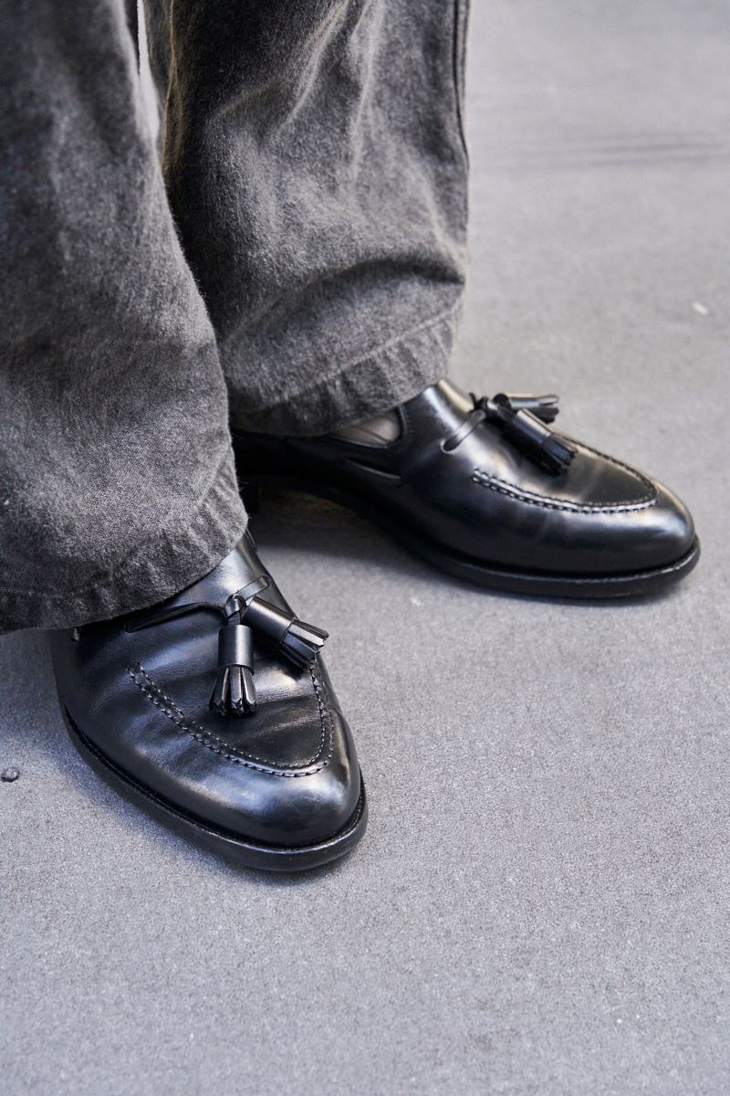 短丈の1stとワイドなブラックワイドデニムで、無二のバランスを構築。さらにはタッセルローファーとインナーの白Tで品良く、爽やかに。超上手、超真似したい。