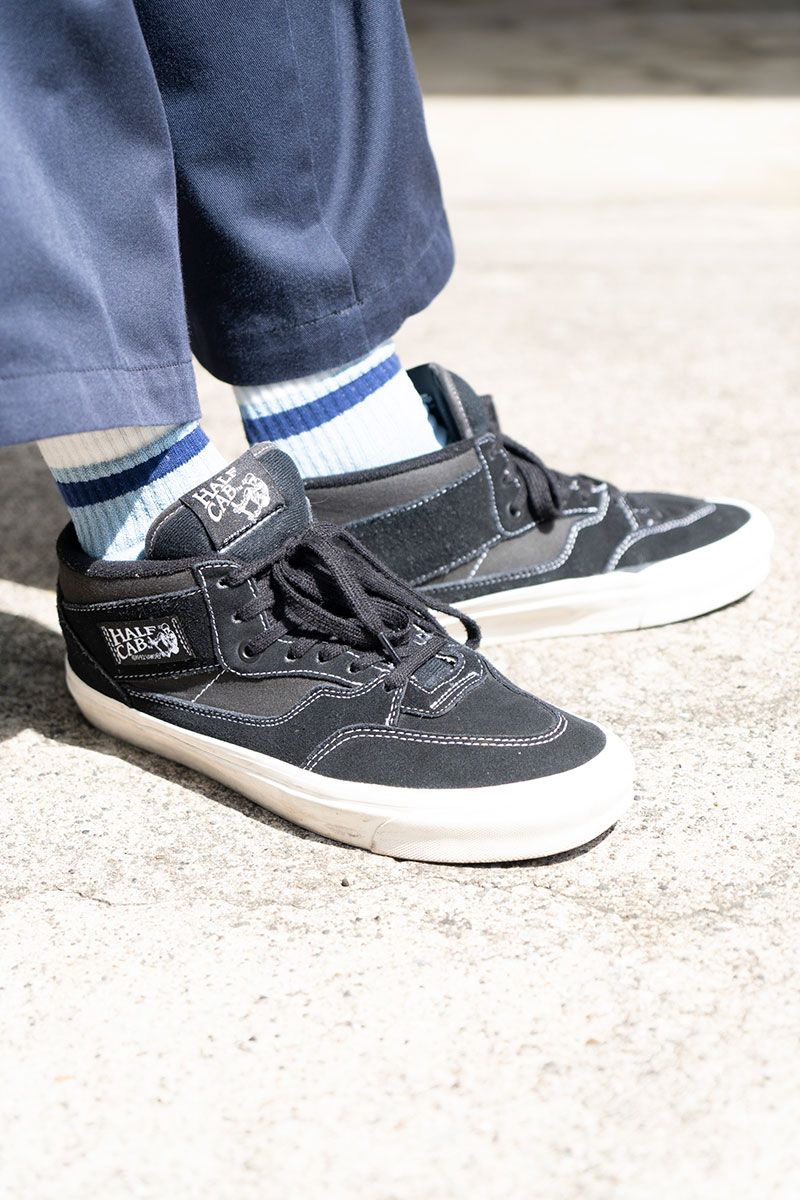 余計な装飾のないシンプルコーディネイトのなかで、ポロシャツならではの生地感が丁度いいアクセントに。上下とも程よくワイドなシルエットバランスもお見事。