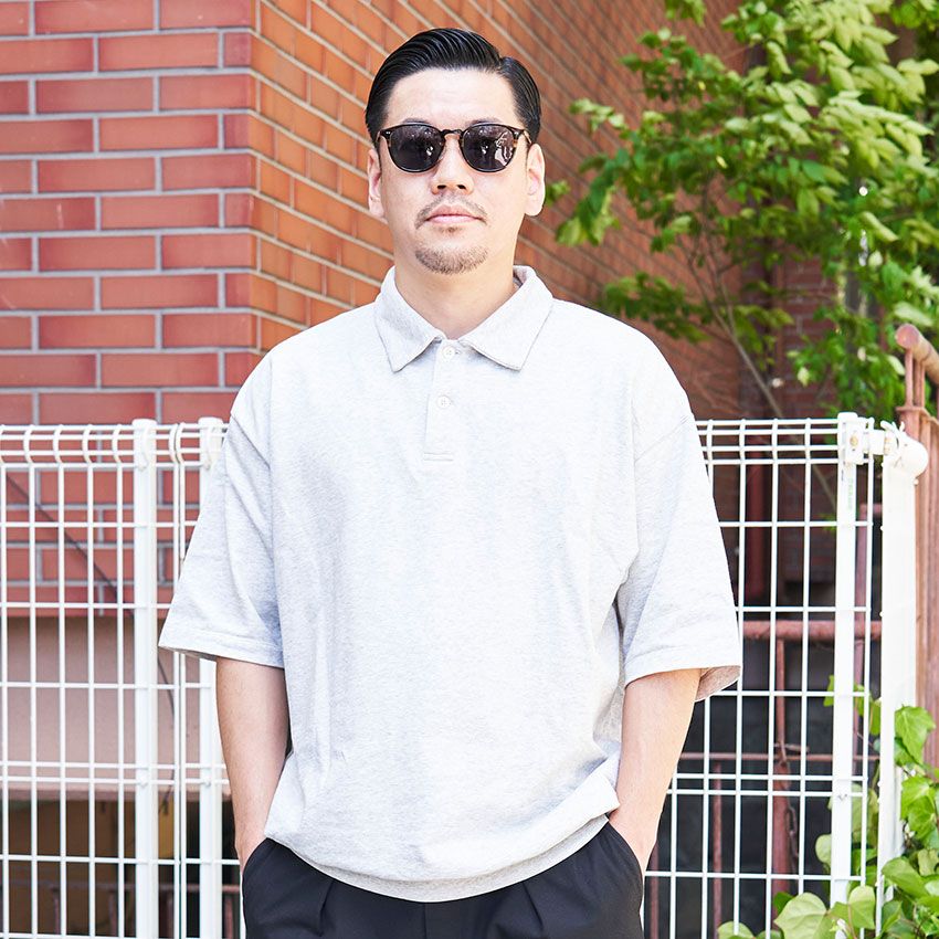 ▶︎関さんのスナップをすべて見る関 賢志さん(28歳)かなり身幅が広く、肩は大胆にドロップ。ルーズシルエットがアイコニックなポロは、“ヤツ”の居場所も特徴的。ポロポニーが右胸に配されたビームス別注と思われる。