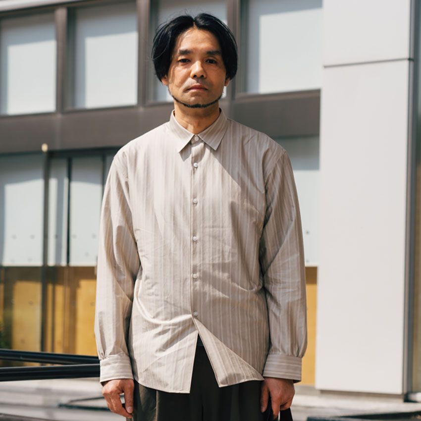 ▶︎松村さんのスナップをすべて見る松村さん(31歳)シャリ感のある薄手のシャツをさらっと羽織って、同系色のチノーズをゆるく合わせる。日に当たってかすれたようなチェックの色柄が、軽快な夏のムードを代弁する。