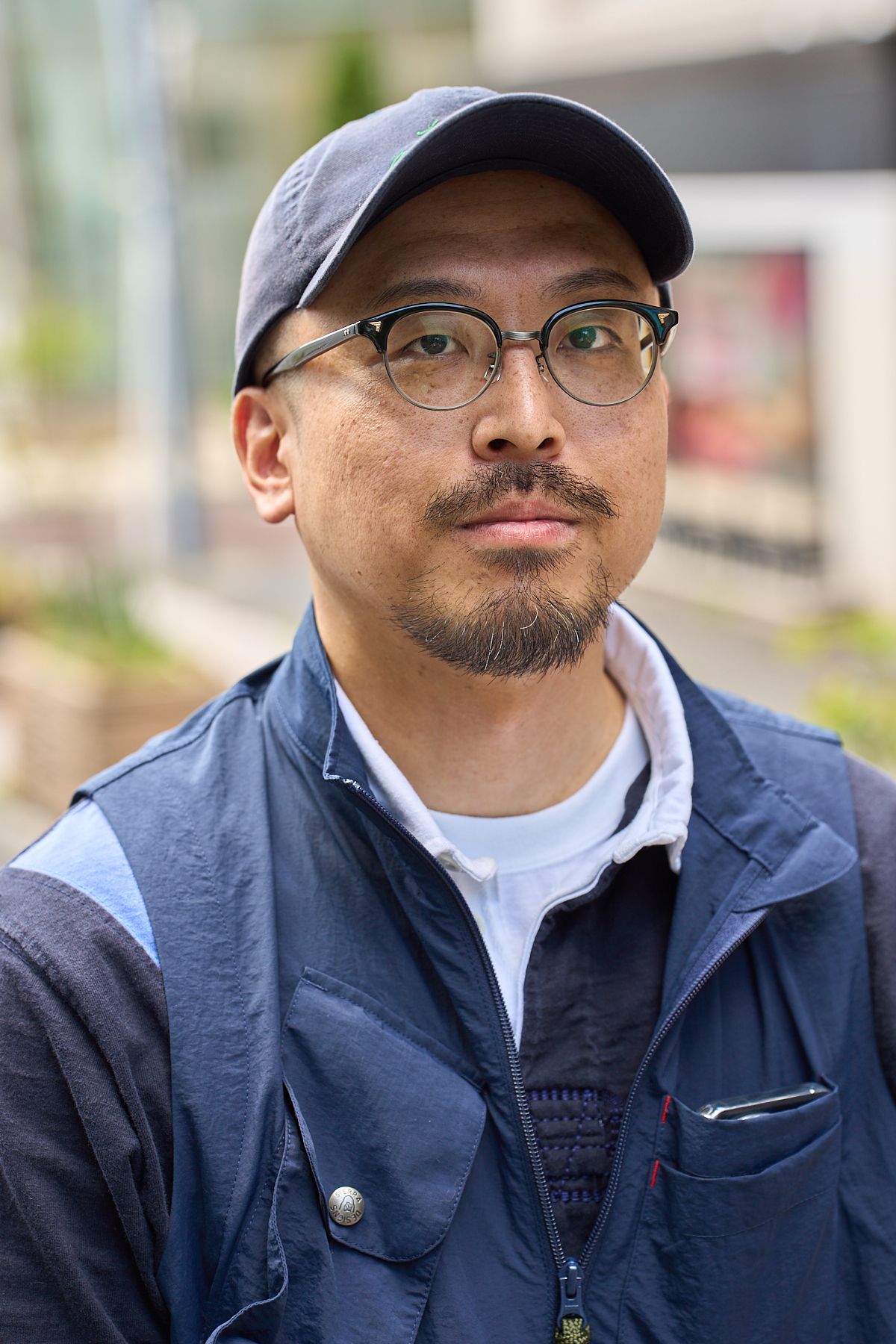▶︎松崎さんのスナップをすべて見る松崎大亮さん(38歳)選んだのはラガーシャツで、アウトドア風味のユーティリティベストをレイヤード。一見、意外に見える組み合わせだが、もとよりラガーシャツはクライマーたちに愛されてきた歴史があるゆえ、理に叶っている。