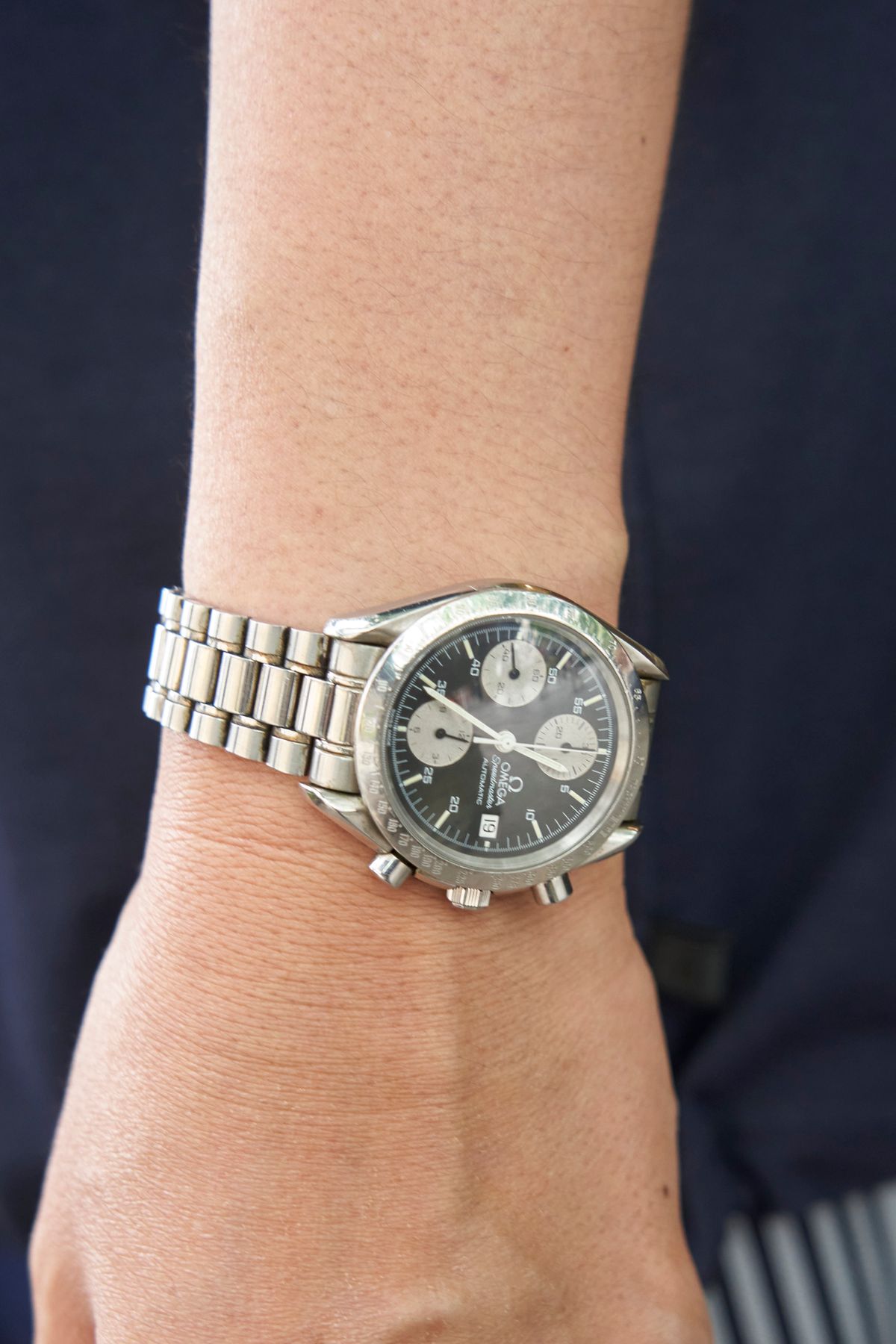 黒に近いコンパクトなニットキャップや、クラシカルなボストン型のサングラスも同様。さらに、手元へ目を移せばオメガである。ラフに見えて、実はこだわりがたくさん。それこそ、大人が目指す休日スタイルの真髄かもしれない。