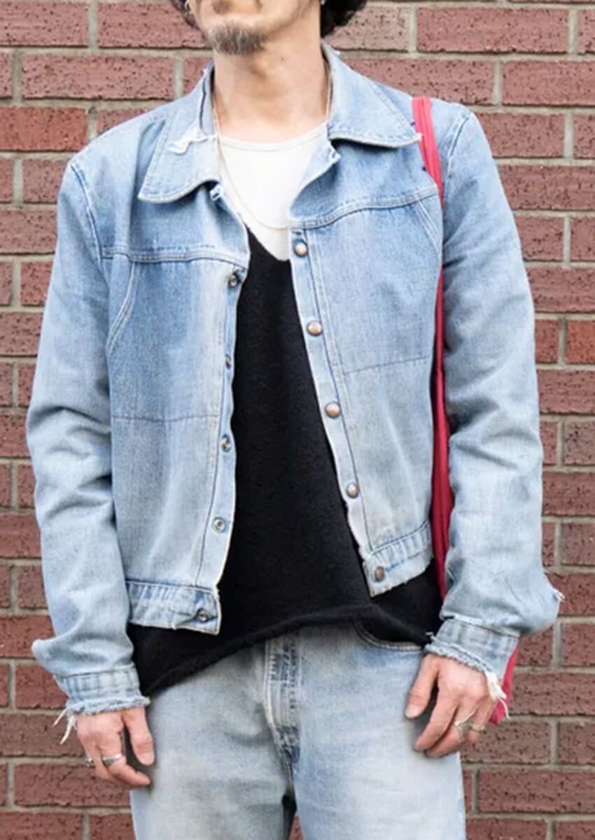 【写真10点】「今着るなら薄色Gジャン!お洒落と春らしさを纏った3人のスナップ集」の詳細を写真でチェック ① 無愛想な着こなしを救う褪せたGジャンのギャップ