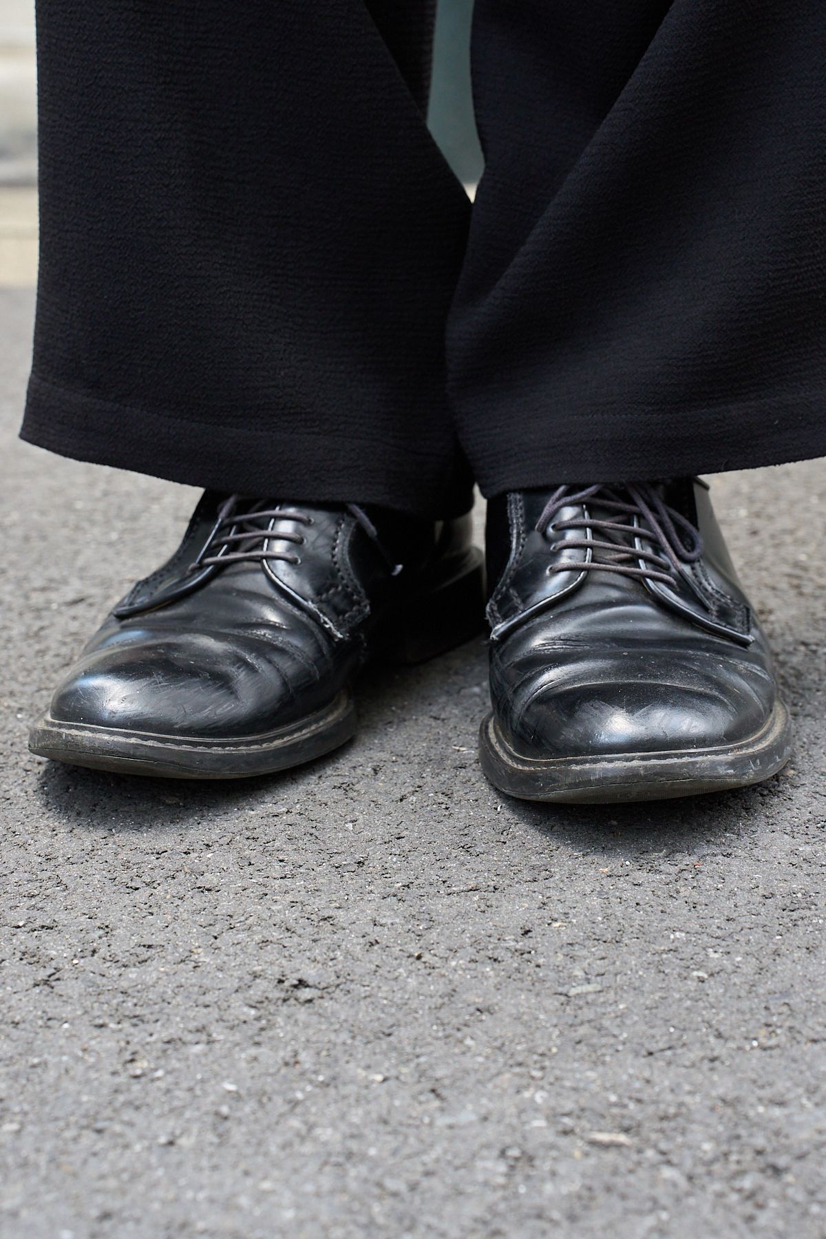 そのアプローチはどうやら奏功しているように見える。単調になりがちなオール黒の着こなしに程よい抑揚を創出。アジが出始めた革靴や茶系レンズのサングラスも同様の効果を発揮。その渋い味付けは、大いに参考にしたいところだ。