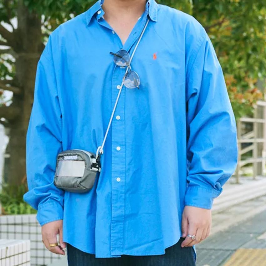 【写真8点】「爽やかさ満点の『ブルーシャツ』!サイジングや色合わせで楽しむ街の洒落者3人衆」の詳細を写真でチェック① 「グローバルワーク」の青シャツをラフに着崩して
