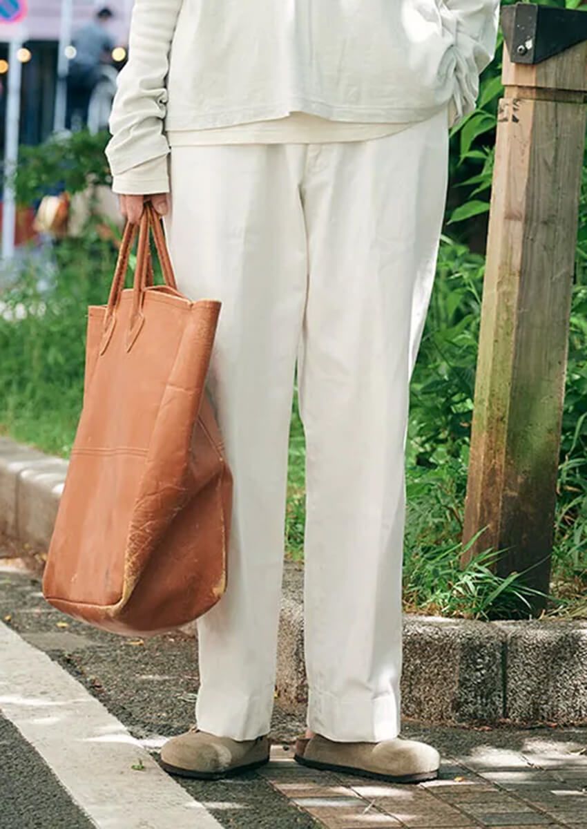 【写真7点】「初夏にはきたい『白パンツ』。洒落た3名の愛用ブランドを徹底調査!」の詳細を写真でチェック① ワイドなオフホワイトが伝えるルードと冷静の間