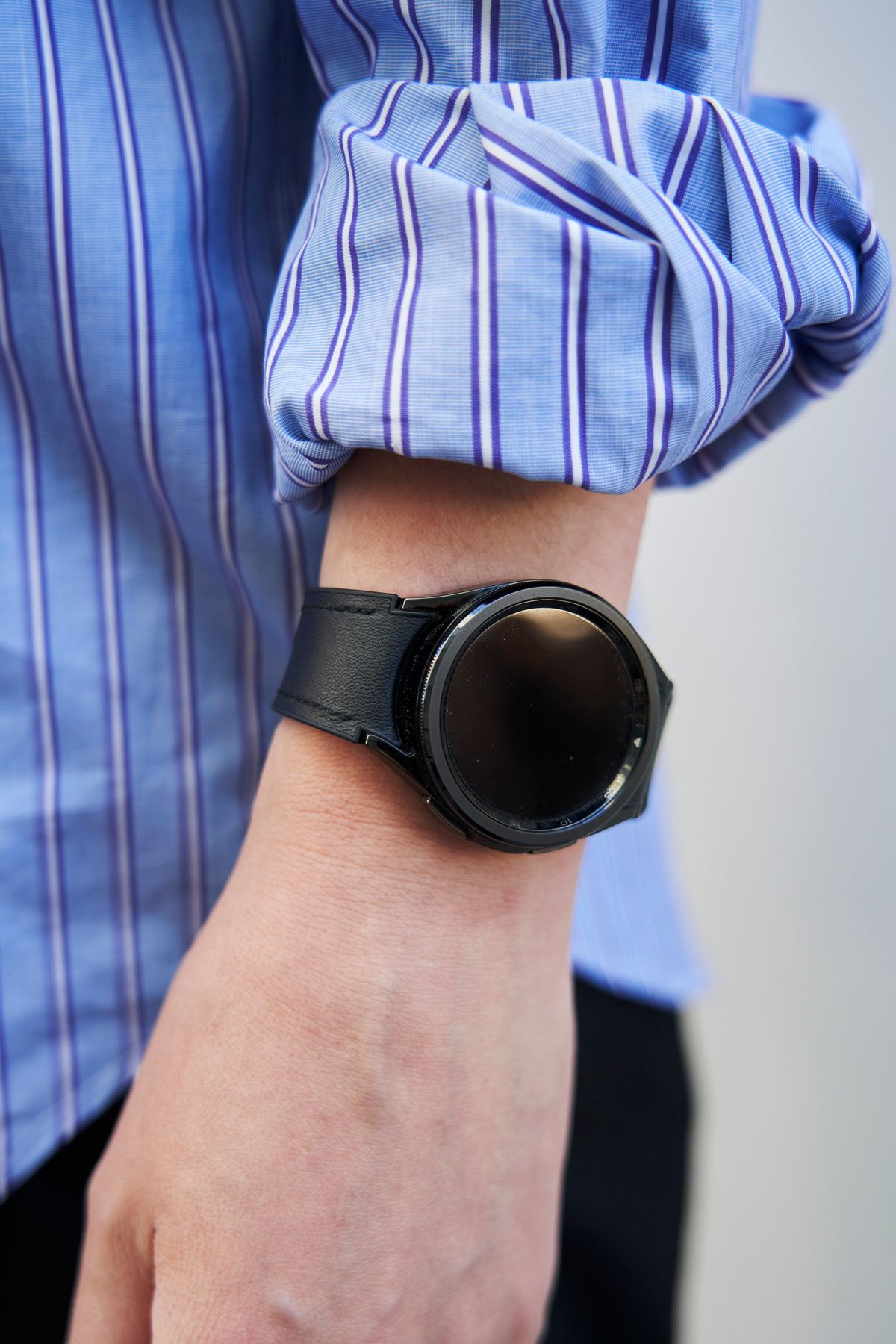 ▶つぐおさんのスナップをすべて見るつぐおさん(42歳)ブルーのストライプシャツは無造作に袖捲り。ボトムスは、ゆとりのあるストレートシルエットの黒パンツを選び、キレイさとカジュアルさを両立させた。