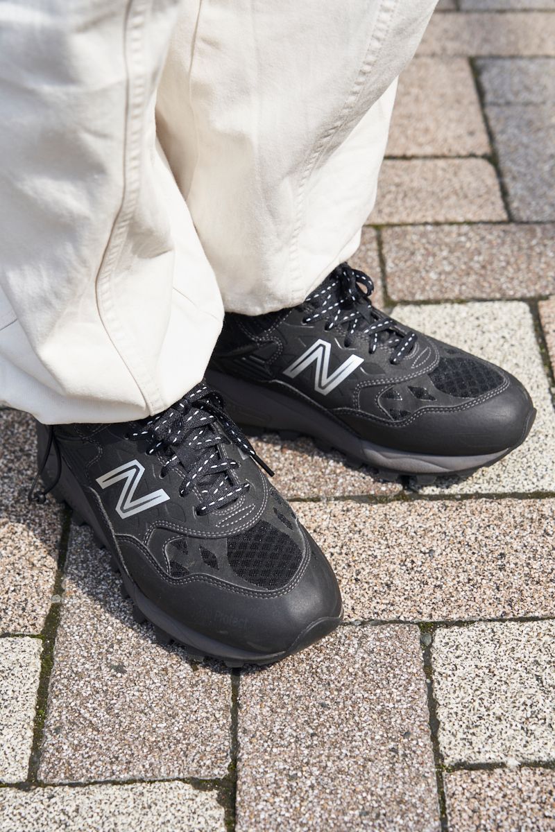 シューズ、バッグ、サングラス、シュプリームのキャップ。センターラインの小物をすべて黒で統一して、大人っぽく。かたや、キャップの白いロゴで“ヌケ”と個性を演出。お上手。