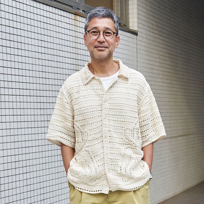 ▶︎山下さんのスナップをすべて見る山下さん(50歳)ゆったりと、軽快に。エアリーなニットシャツにアンクル丈のチノーズをさらりと合わせて、モダンかつコージーに着こなす。襟元で覗くTシャツの見せ方、品がいいワントーンの色使いも巧みだ。