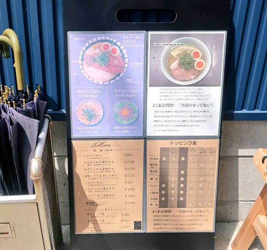 提供メニューの紹介に移ろう。「ぶりゆ」は現在、みそらーめん、しおらーめん、びゃんびゃん麺の3種の麺メニューをレギュラー商品として提供中だ。屋号に味噌拉麺の名を冠していることからも明らかであるが、看板商品は「みそらーめん」。私ももちろん「みそらーめん」を注文させていただいた。