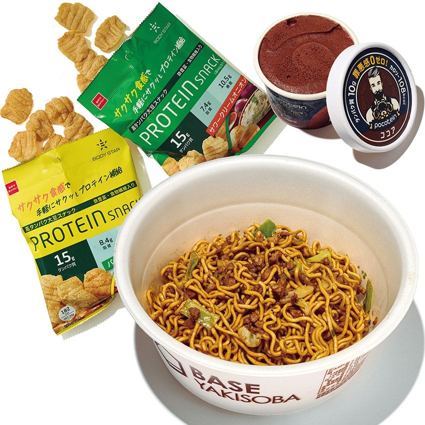 今や、カップ焼きそばやスナック菓子など、ジャンクに見えるフードからもしっかりプロテインを摂取できるのだ。