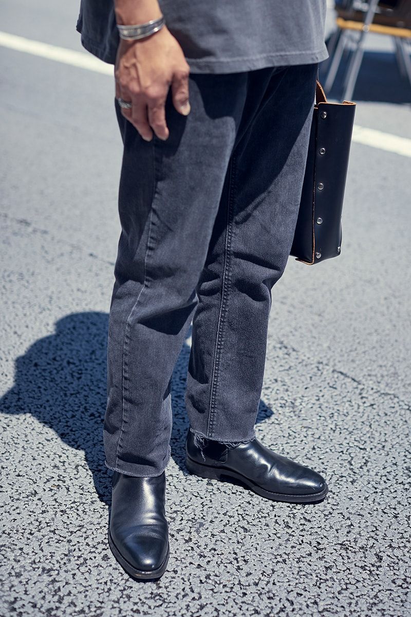 デニム=リーバイス シューズ=クロケット&ジョーンズ バッグ=エンダースキーマ ハット=キジマ タカユキ サングラス=古着 腕時計=オメガ