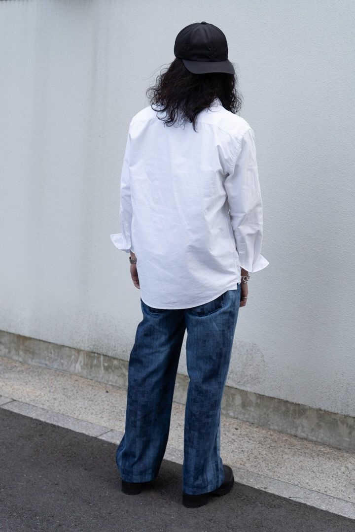 それを教えてくれたのが松嶌さん。シャツはマルニ、デニムはロエベというラグジュアリーブランド合わせ。デニムは色の落ち方が独特で模様のようにも見える。キャップやブーツで黒の重しを加えれば、洒脱なシャツ×デニムスタイルの完成だ。