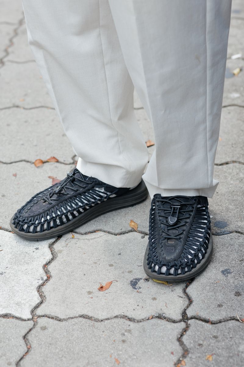 丹羽さんのスナップをすべて見る丹羽信介さん(38歳)エスニック調の柄シャツとキーンのサンダルに、クリーンな白スラックスを挟む。キレイめパンツを取り入れることで、程良く品のある大人カジュアルスタイルに。キャスケットとサングラスも洒落感を高める小道具として◎。