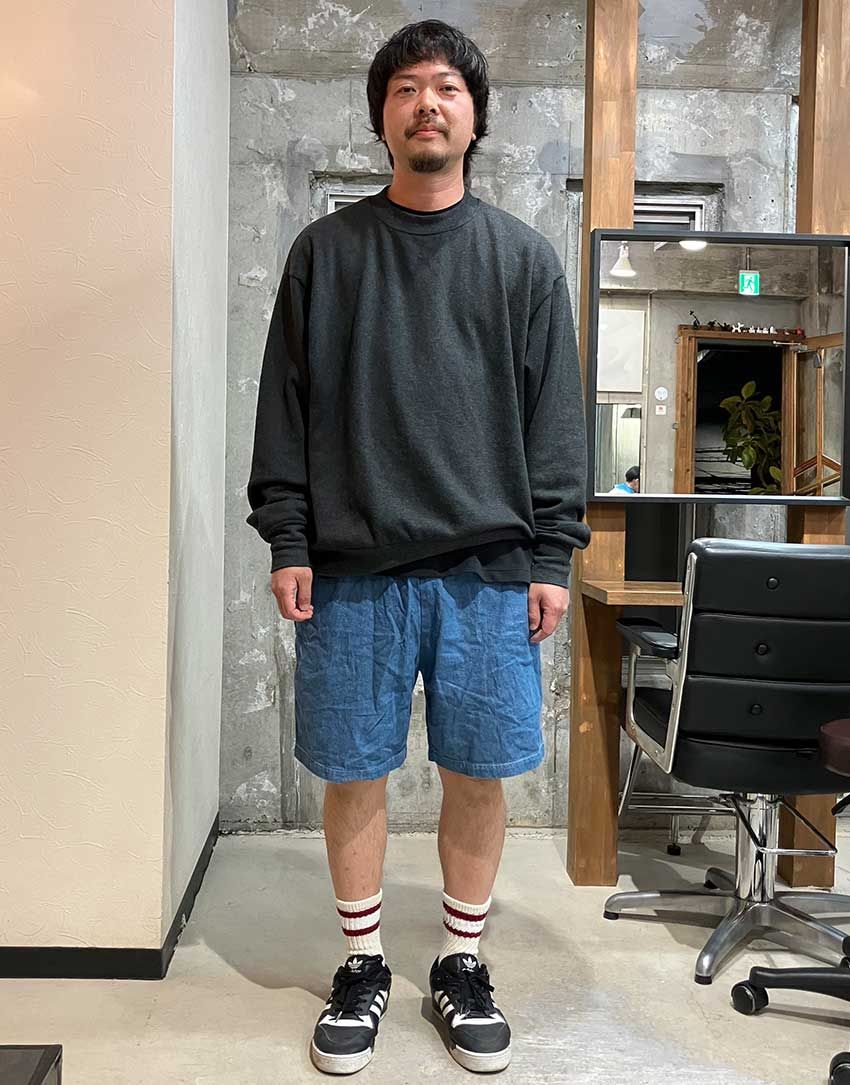 前回は丈が短かすぎたんだよね。今はどんな短パンをはいてるのか、今年も勝間くんのコーディネイトを撮ってきた。