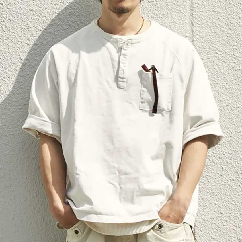 ▶津曲さんのスナップをすべて見る津曲一輝さん(26歳)洗いざらしのような質感のヘンリーネックTシャツに、“ラルフ”のゆるカーゴパンツを合わせた津曲さん。上下ともよく着込んだような風合いがあり、ホワイトコーデ特有のパキッと感が緩和される。そして仕上げに被ったのは銀座トラヤ帽子店のバケットハット。つばを折り返して被ることでより軽快な印象に。顔まわりを明るく見せつつ、コーデのカジュアルさも補強した。