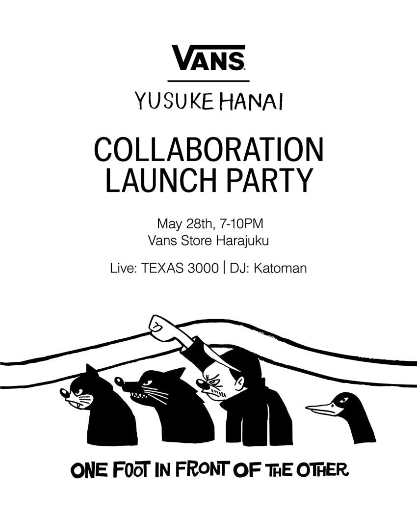発売前日となる5月28日(水)には、ヴァンズ ストア 原宿にてローンチパーティーを開催。当日は本コレクションの先行販売を行い、購入者先着50名には花井氏直筆サイン入りポストカードがプレゼントされる。