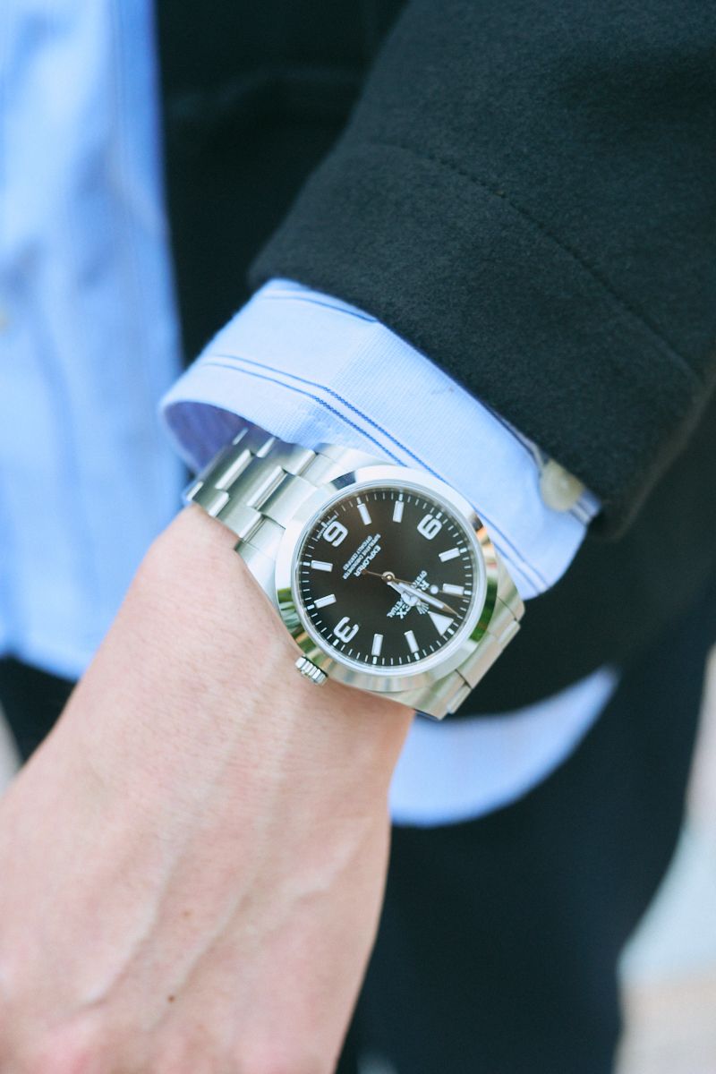 「エルメス」のバングルや、「パラブーツ」の革靴といった、脇を固めるアイテムからも気品が漂う。
