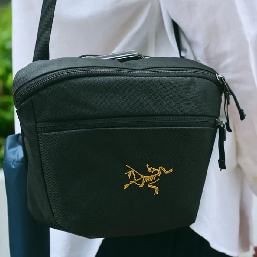 小林さんが選んだのは、ここ数年で人気急上昇中の「アークテリクス」のミニバッグ。むしろポーチのようなコンパクトさだが、黄色い始祖鳥マークが確かな存在感を放つ。