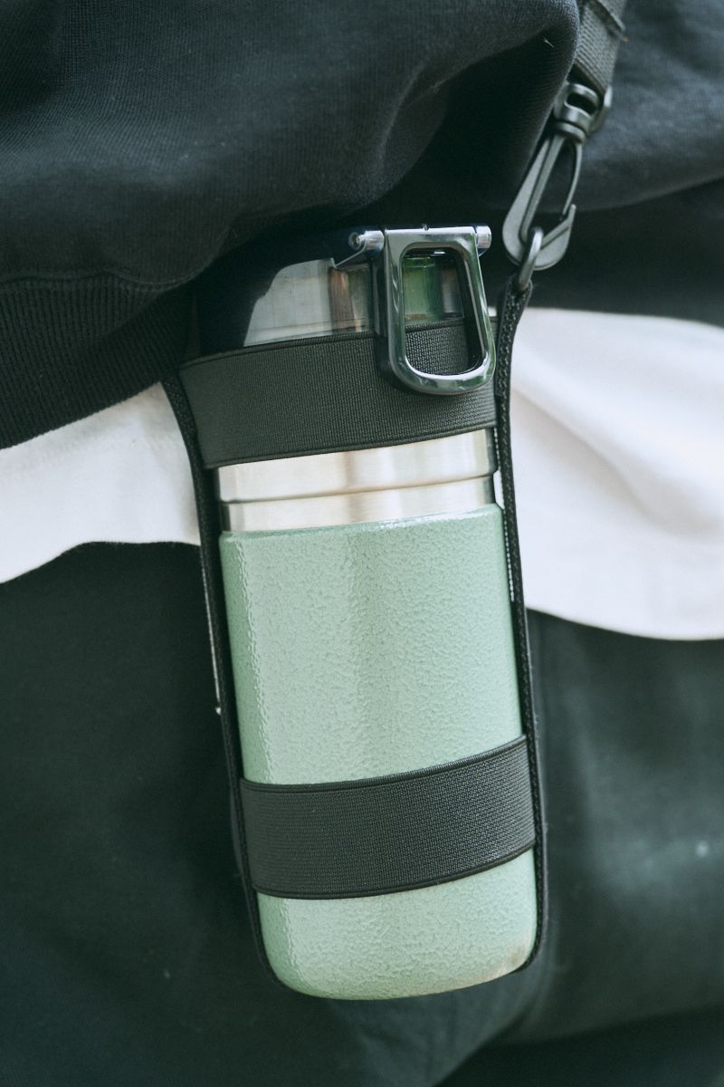 小笠原さんのスナップをすべて見る小笠原 大さん(28歳)インナーの白Tでメリハリをつけたモノトーンコーデに、水色のキャップやシルバーフレームのメガネで個性をプラス。首にかけたヘッドフォンやスタンレーボトルが、アクティブなライフスタイルを物語る。