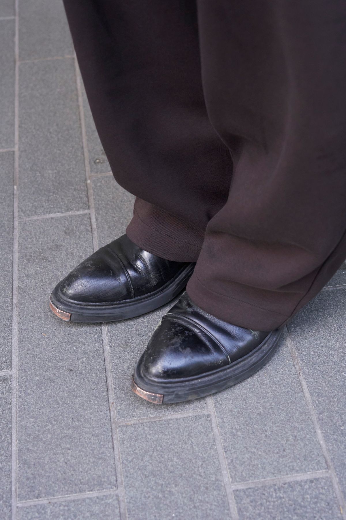 ボリュームのあるシルエットながら、全体にまとまりがあり、静かに主張する合わせの妙。自然体でいながら、どこか色気の漂う佇まいが印象的だ。