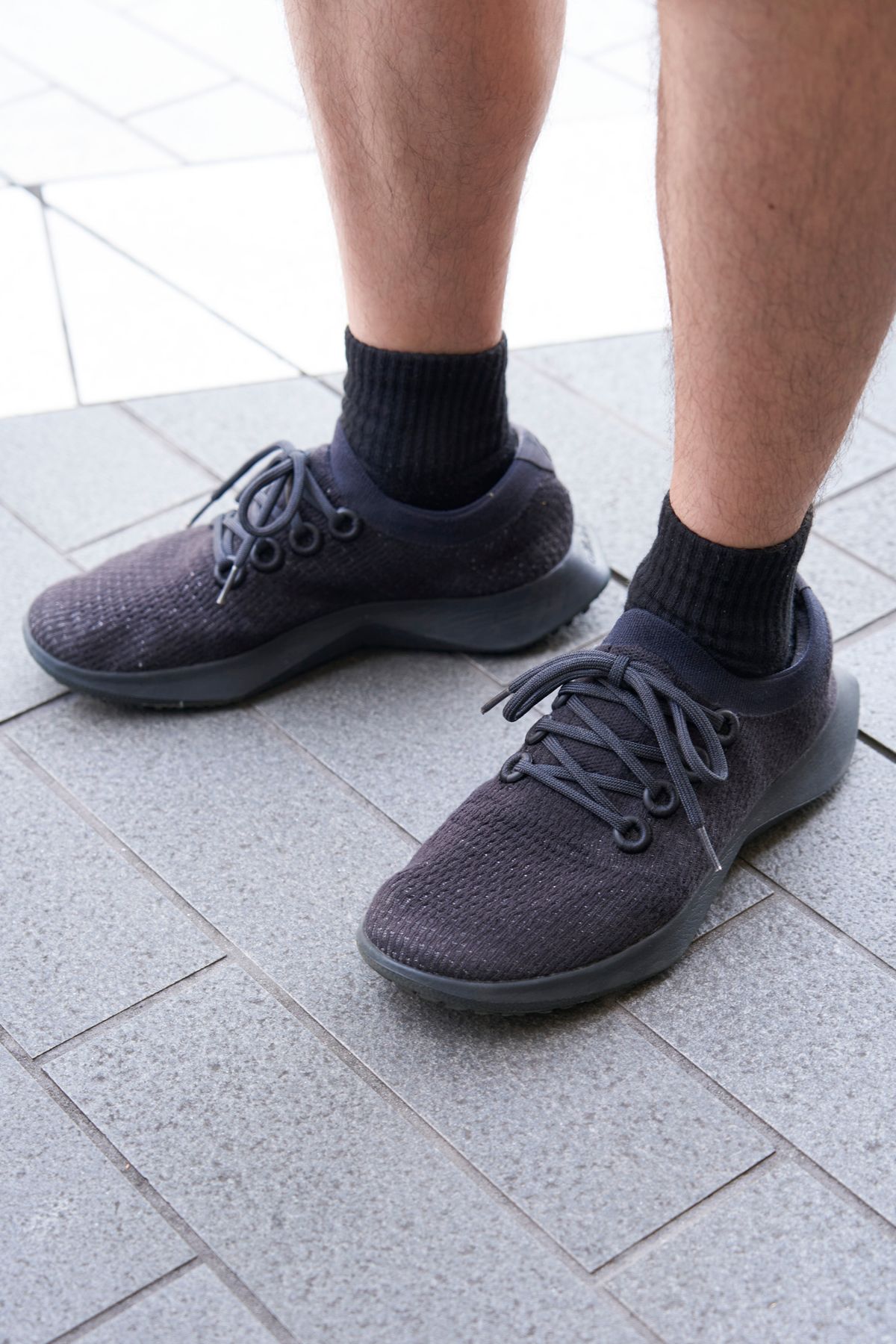 Tシャツ=ウィムバイリドム パンツ=ユニクロ シューズ=オールバーズ 眼鏡=ゾフ 腕時計=アップル