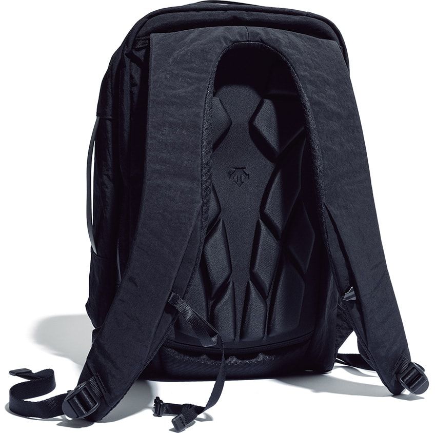 この時季ならではの背中の蒸れ&温度上昇を解消してくれるのが、デサントが開発した「エアロストリームバックパック」。背面の立体成形パーツが空気の出入り口を作り、換気効果を促すのである。