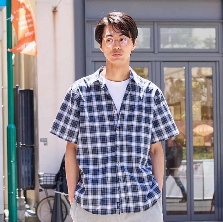 【写真10点】「半袖チェックシャツはブルー系がキブン」の詳細を写真でチェック ① スウェットパンツでラフに振る