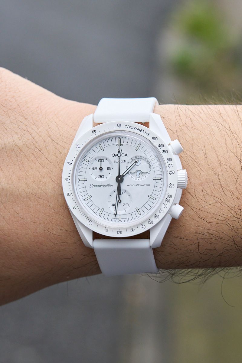 ジャケット=フレッシュサービス Tシャツ=ユニクロ パンツ=グラミチ×ジャーナルスタンダード シューズ=メレル 眼鏡=ジンズ バッグ=アークテリクス 腕時計=オメガ×スウォッチ