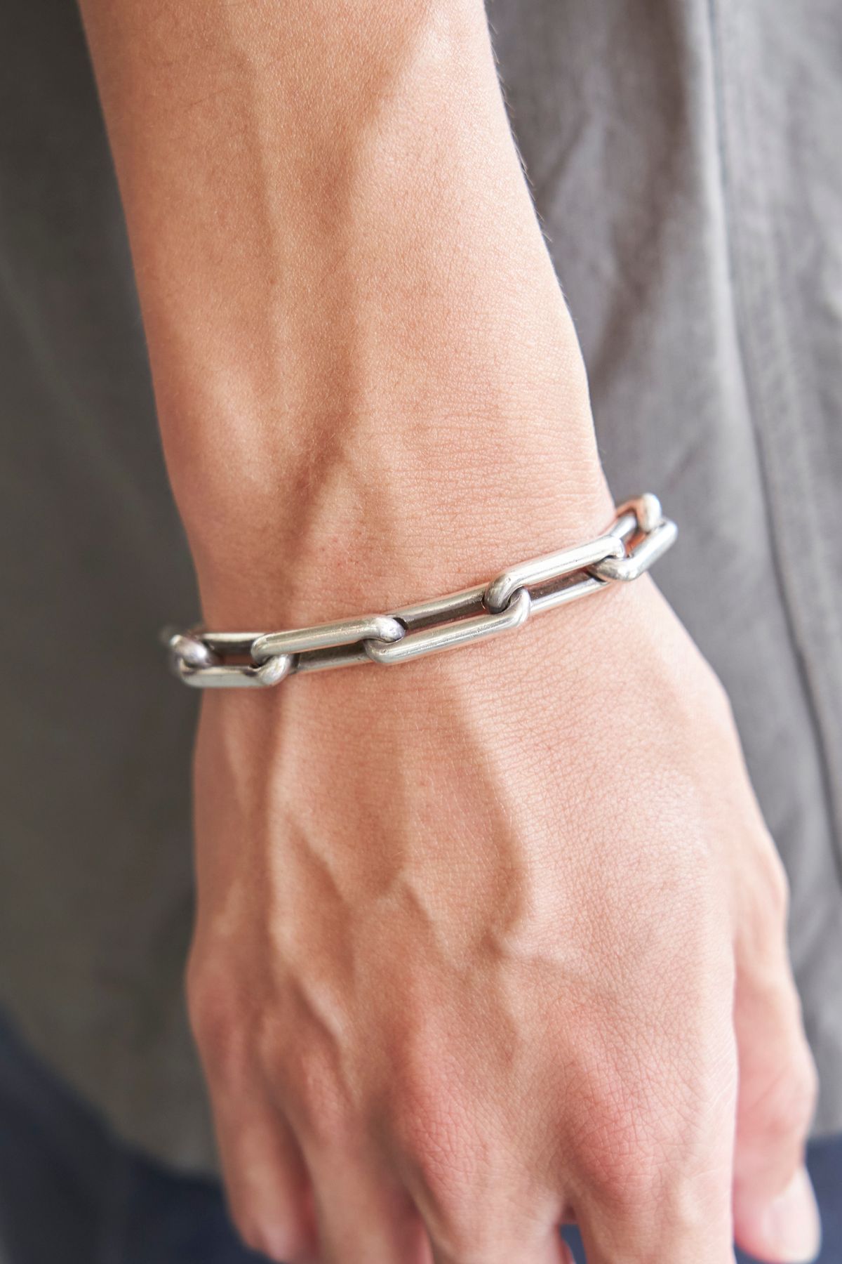 シャツ=アルテリア パンツ=バブアー シューズ=ホカ 眼鏡=アヤメ ブレスレット=エルメス