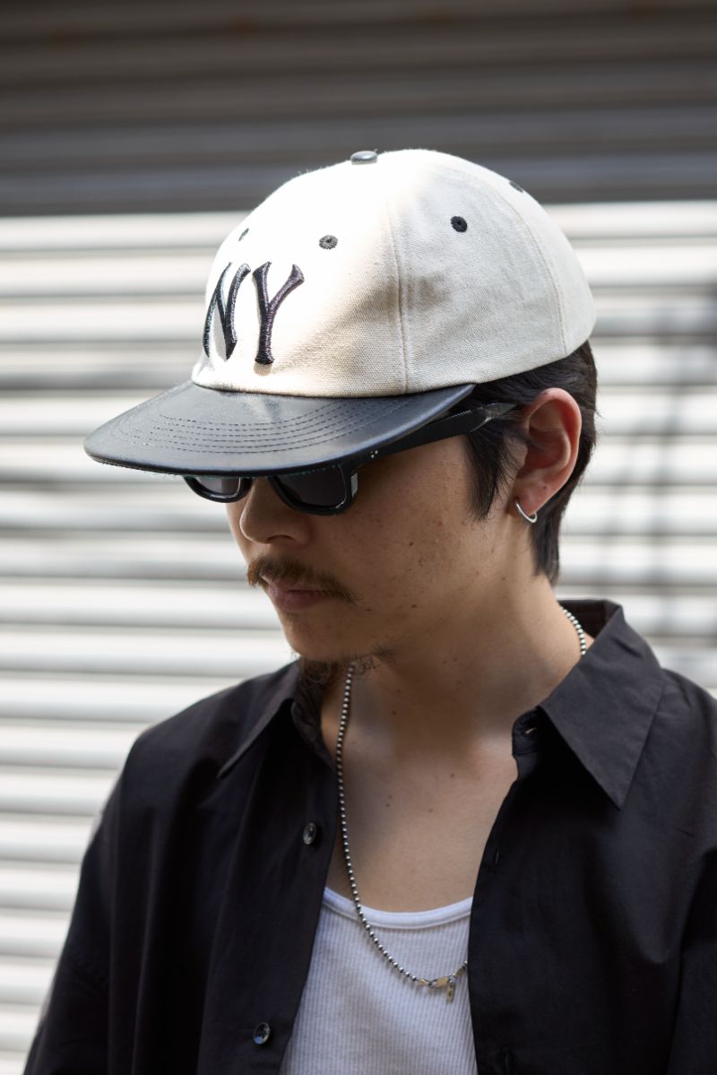 小物はバイザーがレザー仕様のキャップやストリートで人気を博す「ブローム」製の黒ローファーを。締めるところはキチンとおさえた、ルーズながらもだらしなさを感じない審美眼が光るコーデである。