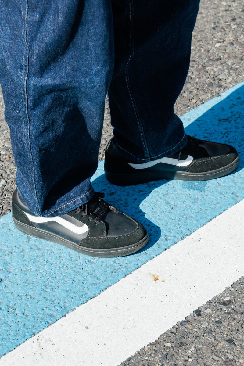ジャケット=インヘリット シャツ=ジムフレックス デニム=アダムエロペ シューズ=ヴァンズ 眼鏡=ベイフロー 腕時計=カシオ リング=グッチ