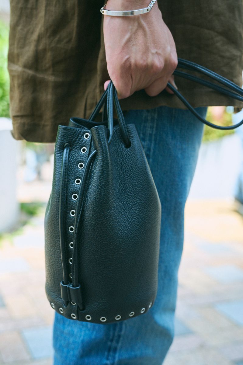 ③ 自然体コーデに添えたレザーミニバッグ「アエタ」