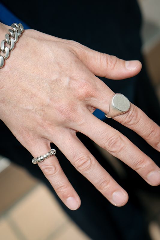 【写真7点】「【40〜50代】大人の「クロムハーツ」さりげなく取り入れた好例スナップ」の詳細を写真でチェック① ピンキーリングが放つ、さりげなくも抜群の個性
