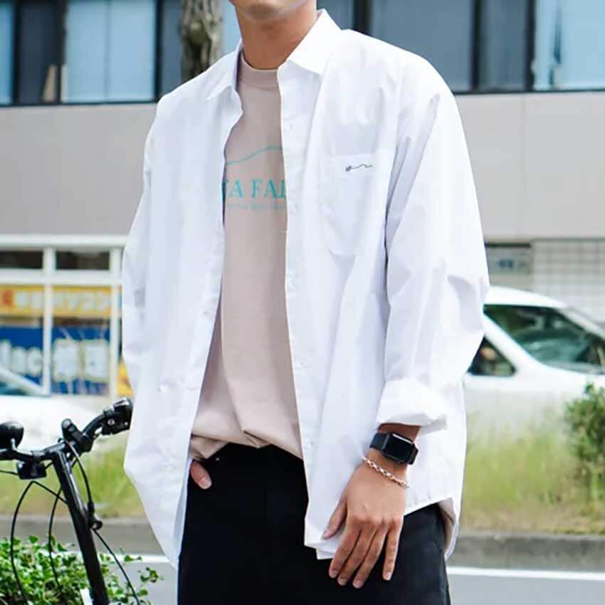 【写真10点】「白シャツはサラッと羽織るが鉄則」の詳細を写真でチェック① サイジングと袖のロールアップでリラックス感を重視