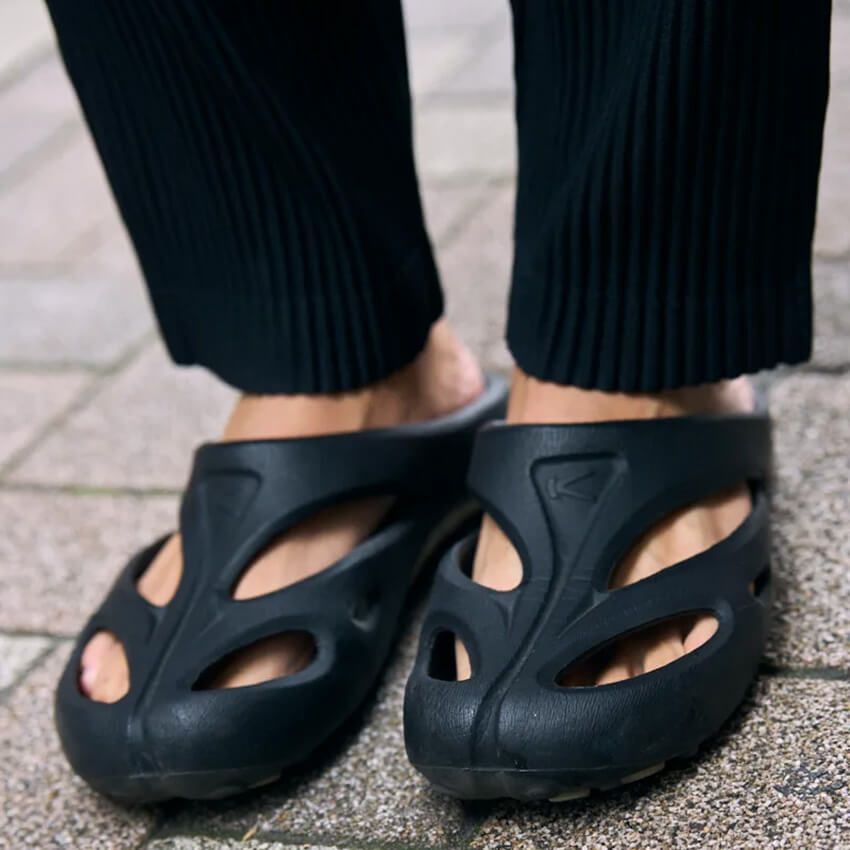 暑さはどうにもならないとはいえ、装いはなるべく涼しげでありたいもの。ということでまずは足元。スニーカーからサンダルに履き替えよう。街の洒落者たちの主流はスポーティな黒サンダルだった。