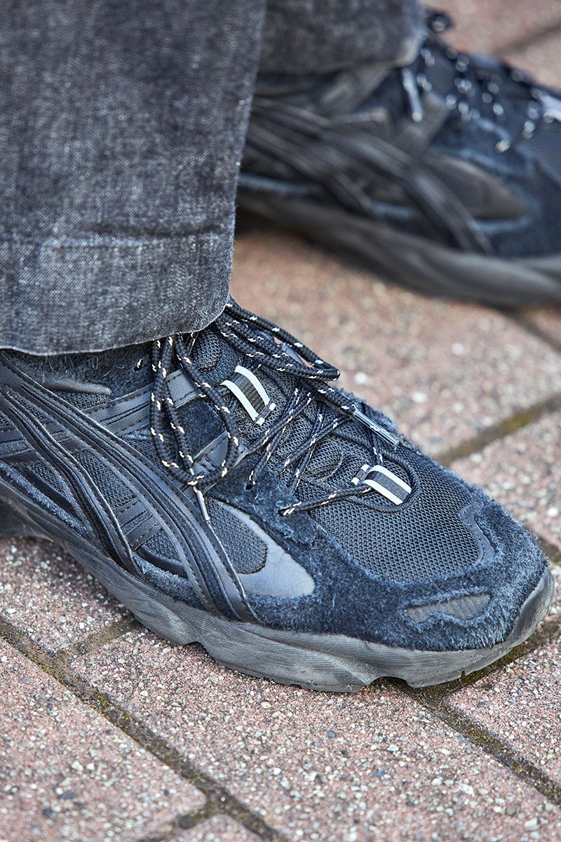 Tシャツ=エイトン スニーカー=アシックス 眼鏡=イエローズプラス