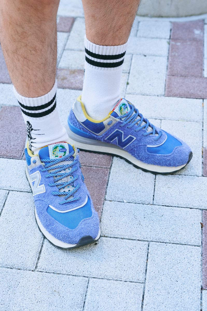 Tシャツ=セブンハンドレッドフィル パンツ=エルエルビーン シューズ=ボデガ×ニューバランス 帽子=カップアンドコーン 眼鏡=サイドエフェクツアイプロダクト