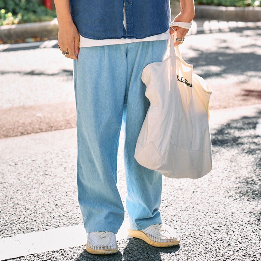 山本さんのスナップをすべて見る山本雄吾さん(31歳)ブルーのストライプシャツにベージュのワイドパンツを合わせた、清潔感のある王道シャツスタイル。そこにキーン代表モデル「ユニーク(UNEEK)」を投入し、抜け感をプラスした。