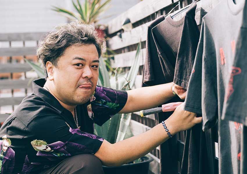 昔からダメージの激しいデニムを⾃らの⼿でお直しをするなど、久保⽥さんにとってリメイクやカスタムは⾝近なもの。今回は⾃⾝で⼿がかけた愛⽤品を中⼼に、お気に⼊りのリメイクアイテムを紹介してもらった。