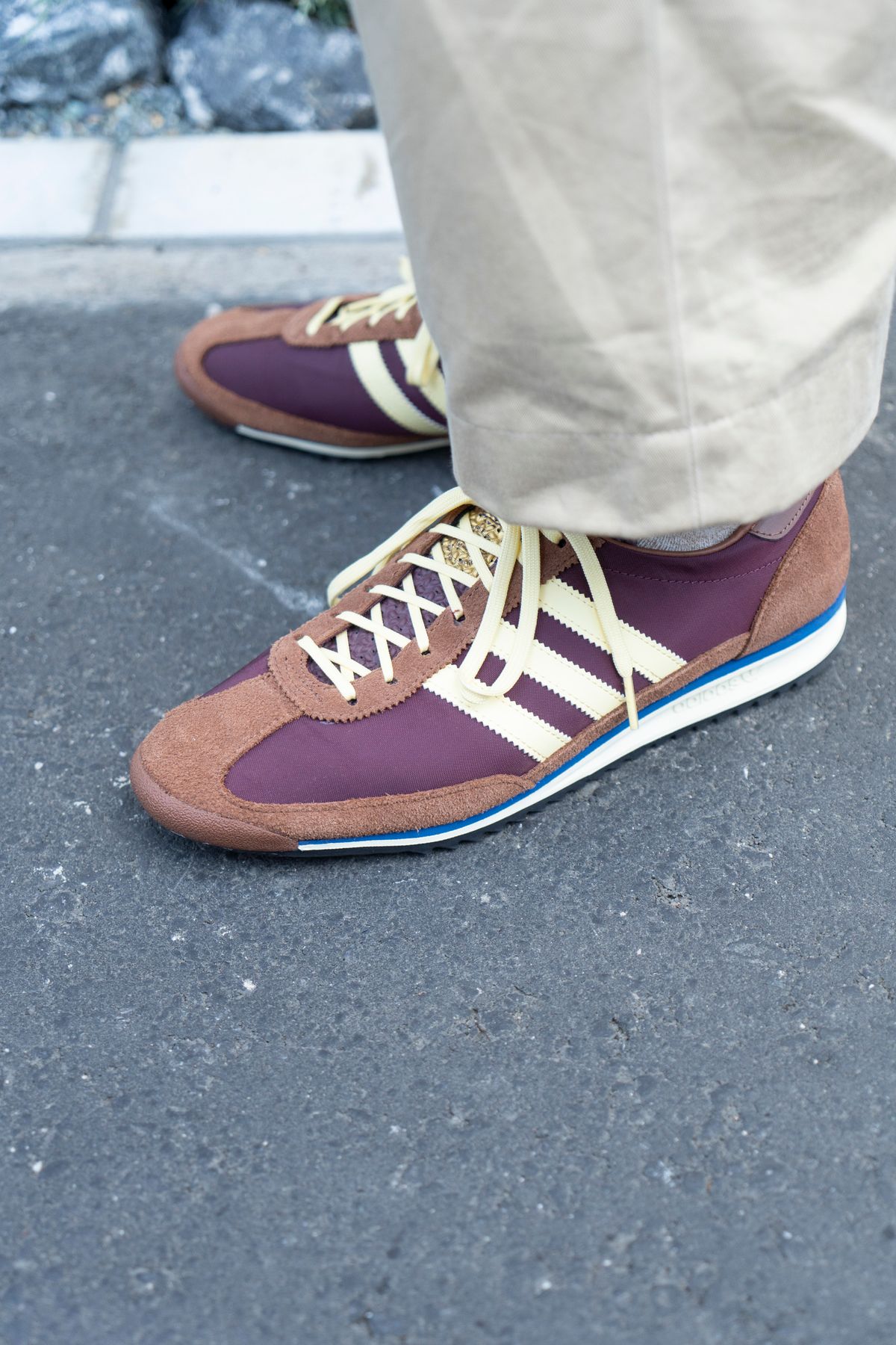 シンプルな色合いを補強するように散りばめられた、ブラウン系の小物にも注目。キャップとレザーバッグ、そしてスニーカーで、着こなしにもうひとつの芯を通した。