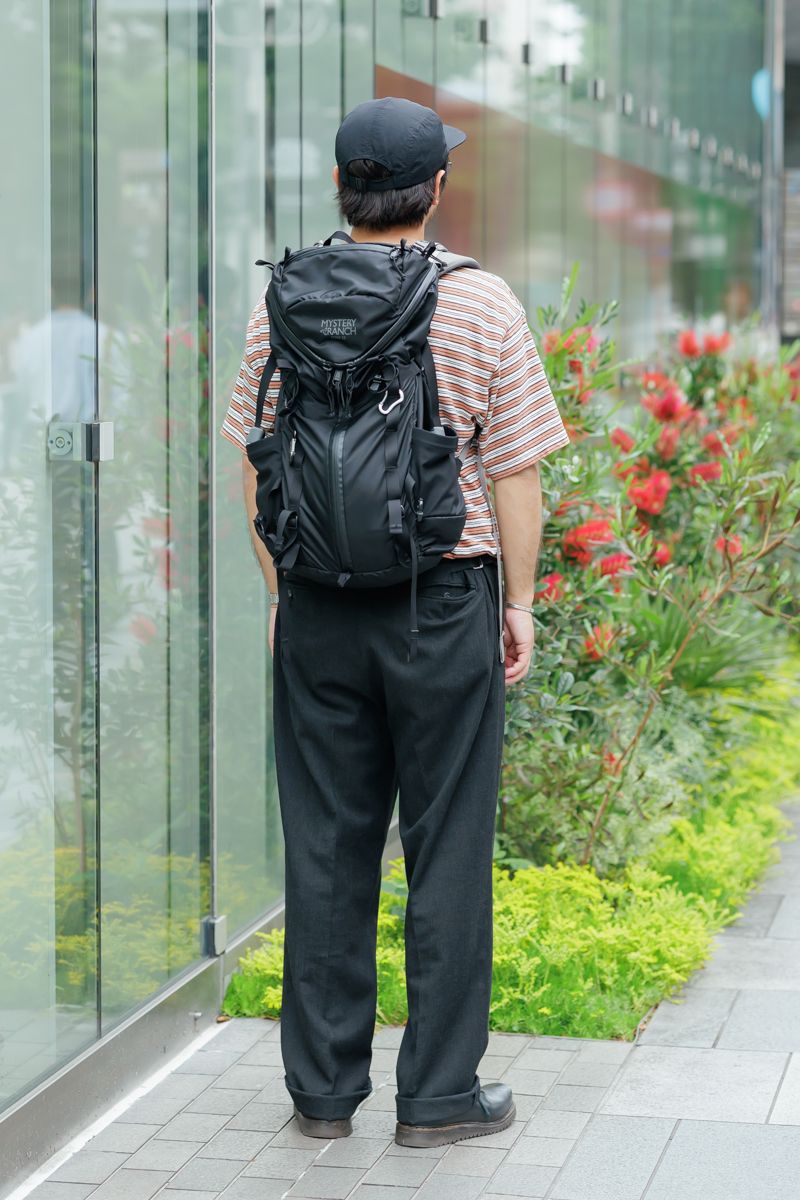 Tシャツ=リラックスオリジナル パンツ=ポロラルフローレン シューズ=古着 眼鏡=エフェクター バッグ=ミステリーランチ