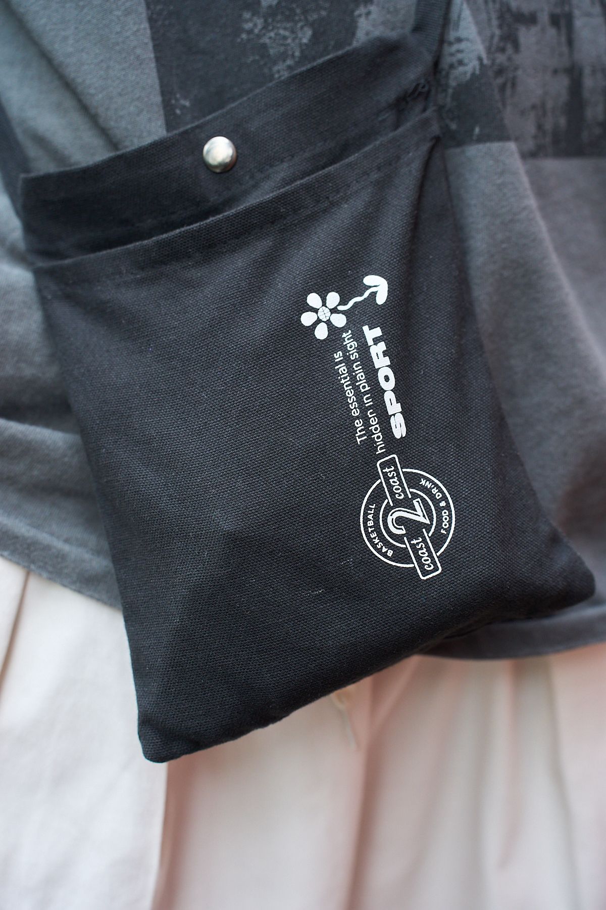 Tシャツ、バッグ=ノーブランド パンツ=ウィテンプト スニーカーズ=ナイキ キャップ=シュプリーム