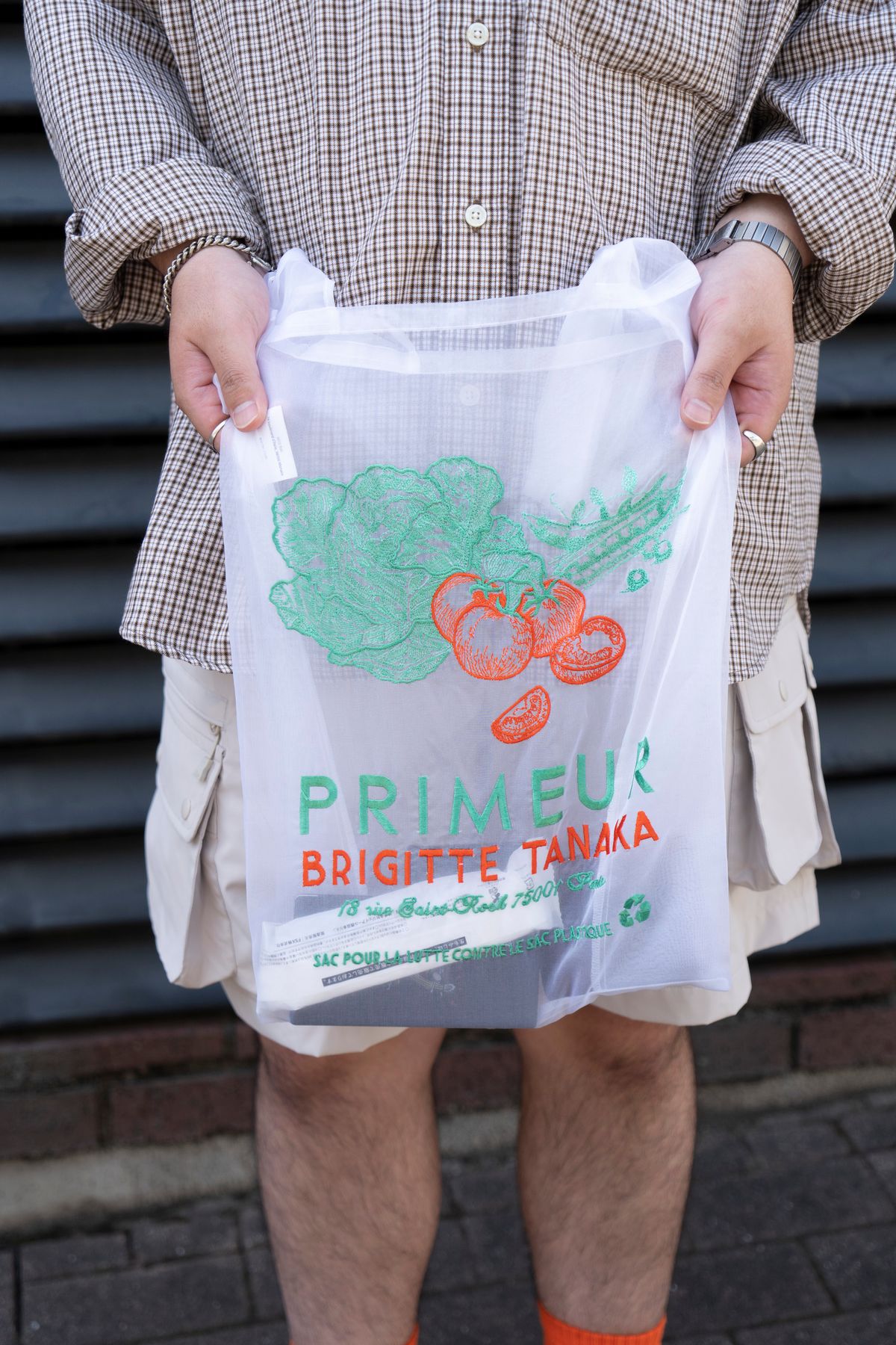 にしても、シャツ姿がこなれている。袖を捲った腕元をひっそりと飾る「カシオ」に、ブレスレットやリング。襟元から覗かせた白Tは清潔感を演出する。程良くゆるいサイジングと、ボリュームのあるカーゴのバランス感もグッド。だから、ソックスの使い方もここまでナチュラルに見える。