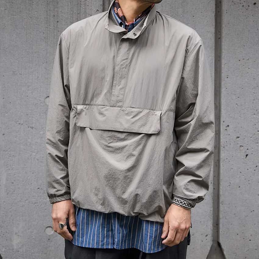 ▶髙埜さんのスナップをすべて見る髙埜 雅さん(42歳)見るからにライト&ソフトなアノラックを、ブルーのストライプシャツに重ね着。落ち着きと驚きを両立した配色&着丈のバランスが、無二の雰囲気を伝える。