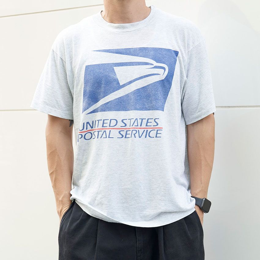 そんな装いに“コク”を与えているのが、古着のTシャツだ。これはアメリカ合衆国郵便公社(United States Postal Service)のロゴがプリントされた企業モノ。